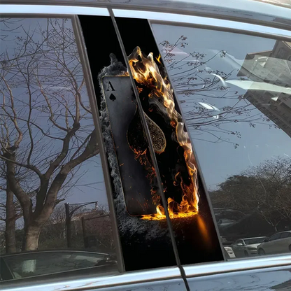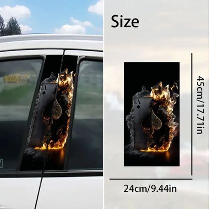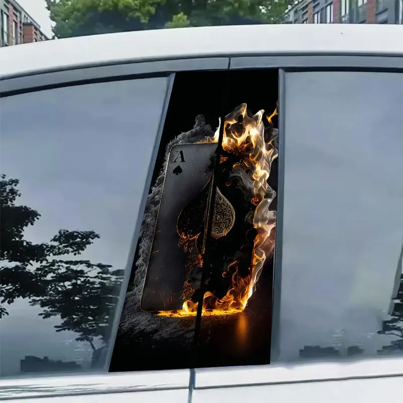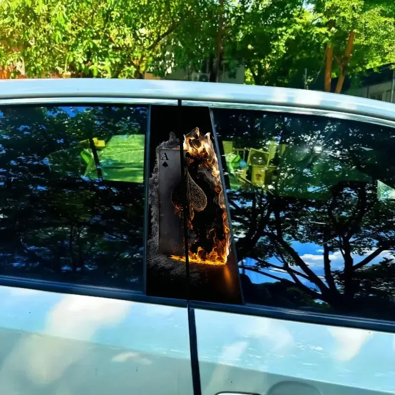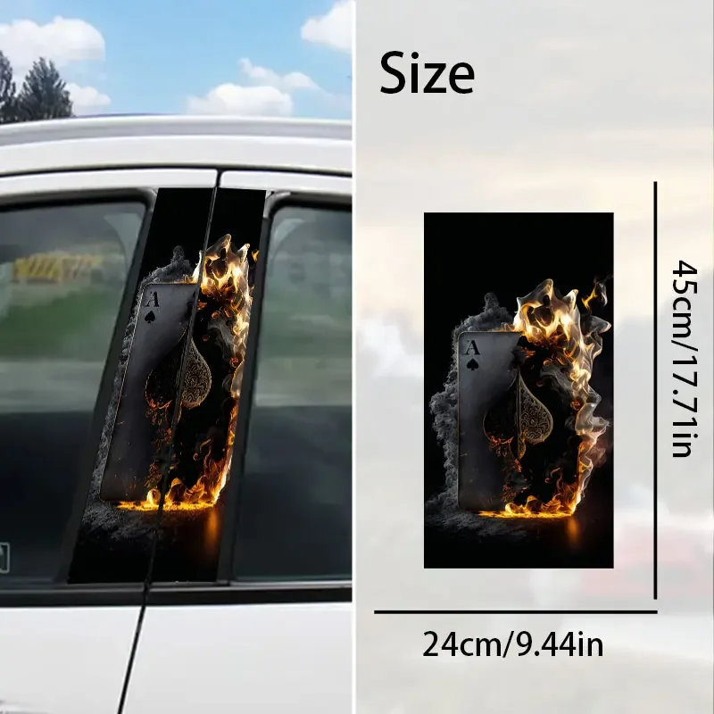Cool Flame Poker Car Sticker! Featuring an edgy poker card design surrounded by fiery flames, this waterproof decal is perfect for adding a bold touch to your car’s B-pillar, doors, or any smooth surface. Made with durable, weather-resistant vinyl, it offers excellent sun protection while concealing minor scratches, making it both stylish and functional. This DIY sticker is easy to apply and remove, allowing for hassle-free customization without residue, perfect for anyone looking to make their car stand out.
