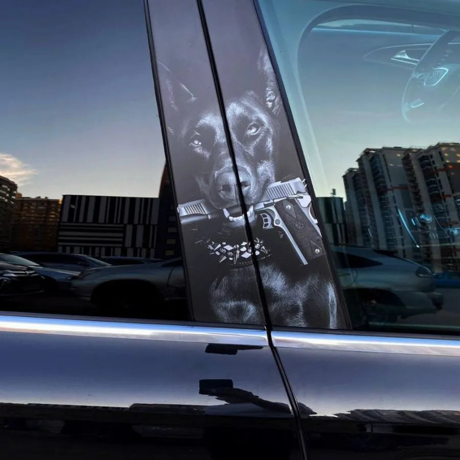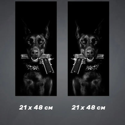 This is a set of stickers for door pillars on 2 sides. The size of each sticker is 21 x 48 centimeters in the style of "Doberman".