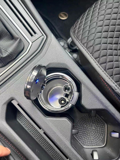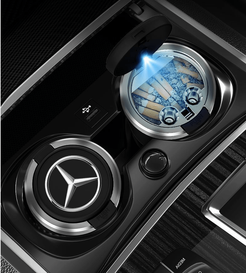 • Design : Use as a smokeless ashtray in the car and also as a trash can when needed. When you open and lift the lid, the ashtray's cold blue LED lights up. Also, the lid can be securely closed to prevent odor from spreading or lingering.