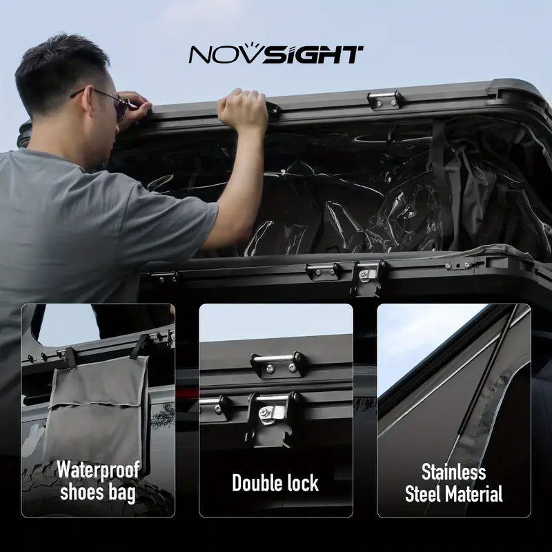 The rooftop tent is equipped with a sturdy aluminum alloy shell that can bear heavy loads without deformation; The 420d Oxford fabric is highly waterproof, offering comprehensive protection for your outdoor adventures against wind, rain, and other natural elements.
