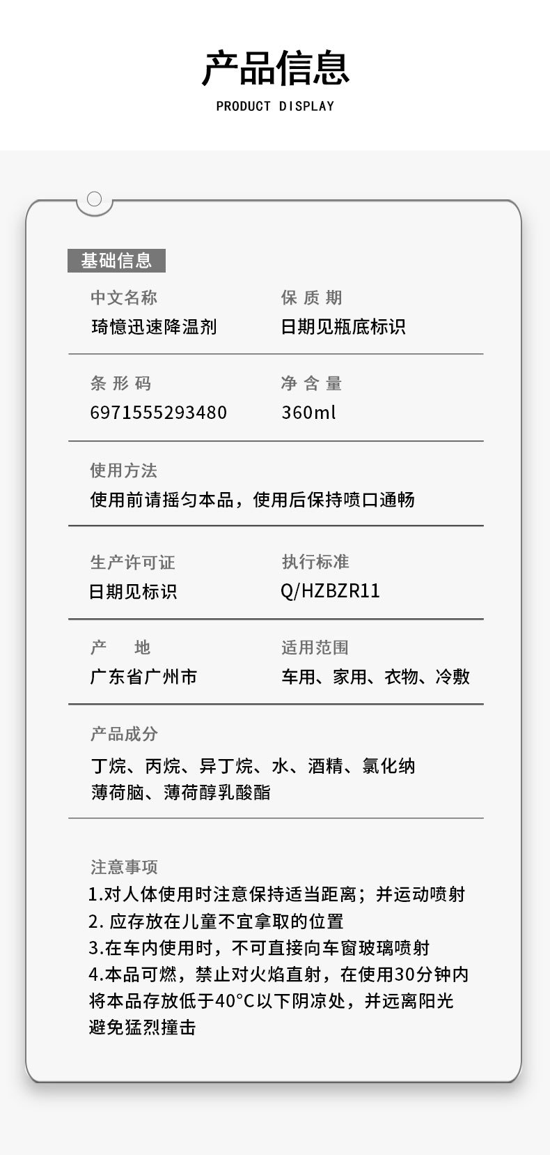 Specifications: Quick coolant 360ml/bottle