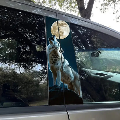 • Wolf Howling at the Moon Features a dramatic and creative depiction of a wolf howling at the moon, providing a visually striking and artistic look to your vehicle.