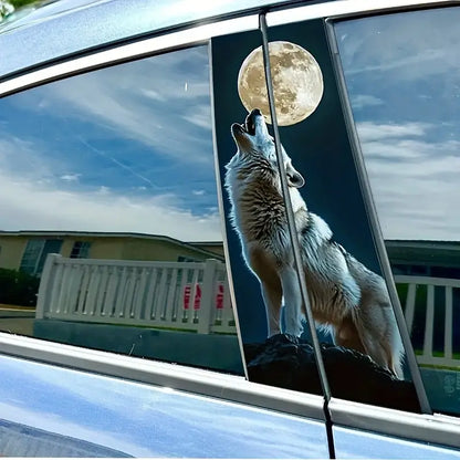 Add a touch of wilderness and artistry to your vehicle with the 2pcs Wolf Howling at Moon Vinyl Car Decals. These striking decals are designed to enhance the appearance of your car’s B-pillars or rear windows while offering protective benefits.